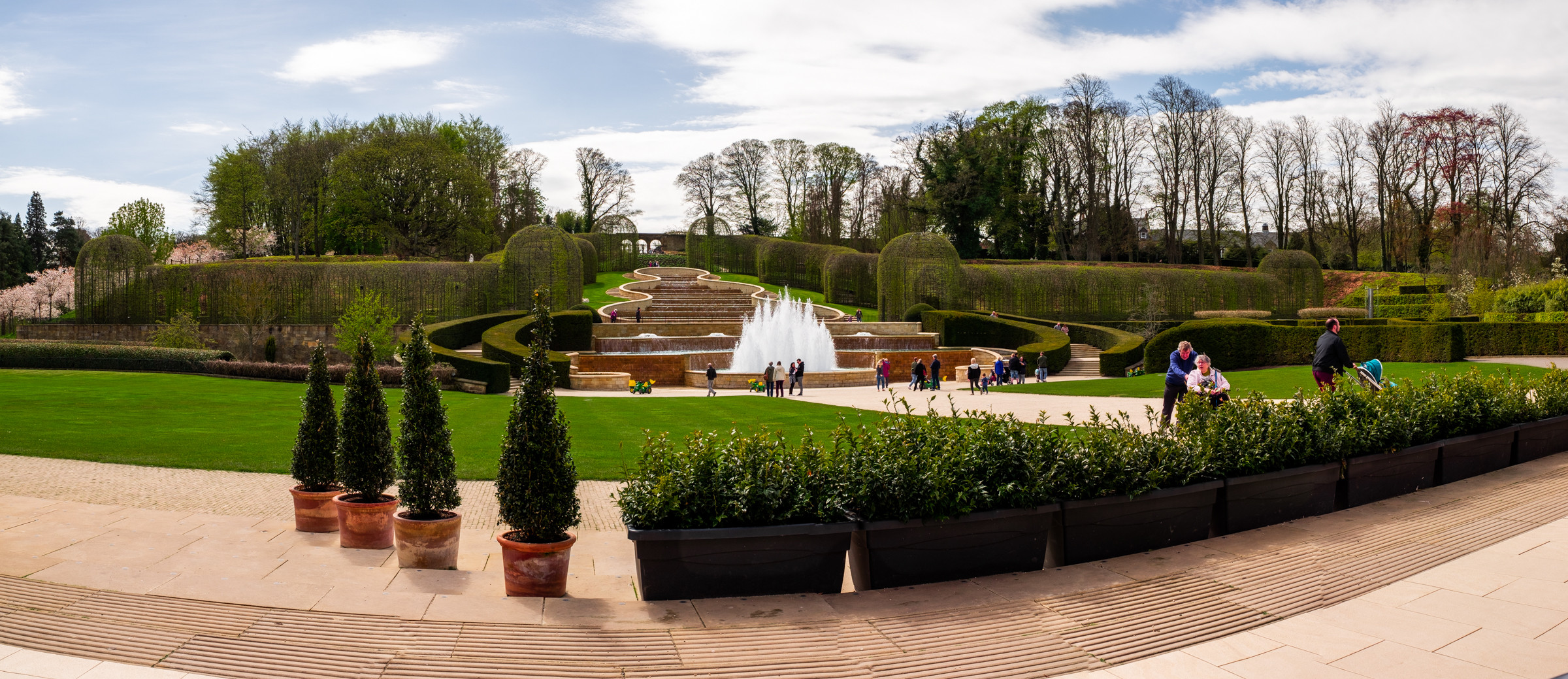 En 1997, Jane Percy (en), épouse du 12e duc de Northumberland, lança d'importants travaux de restauration du domaine et de ces jardins en sollicitant des paysagistes renommés comme Jacques Wirtz (en) et Peter Wirtz. Le coût de cette réhabilitation fut estimé à 42 millions de livres.[citation nécessaire]